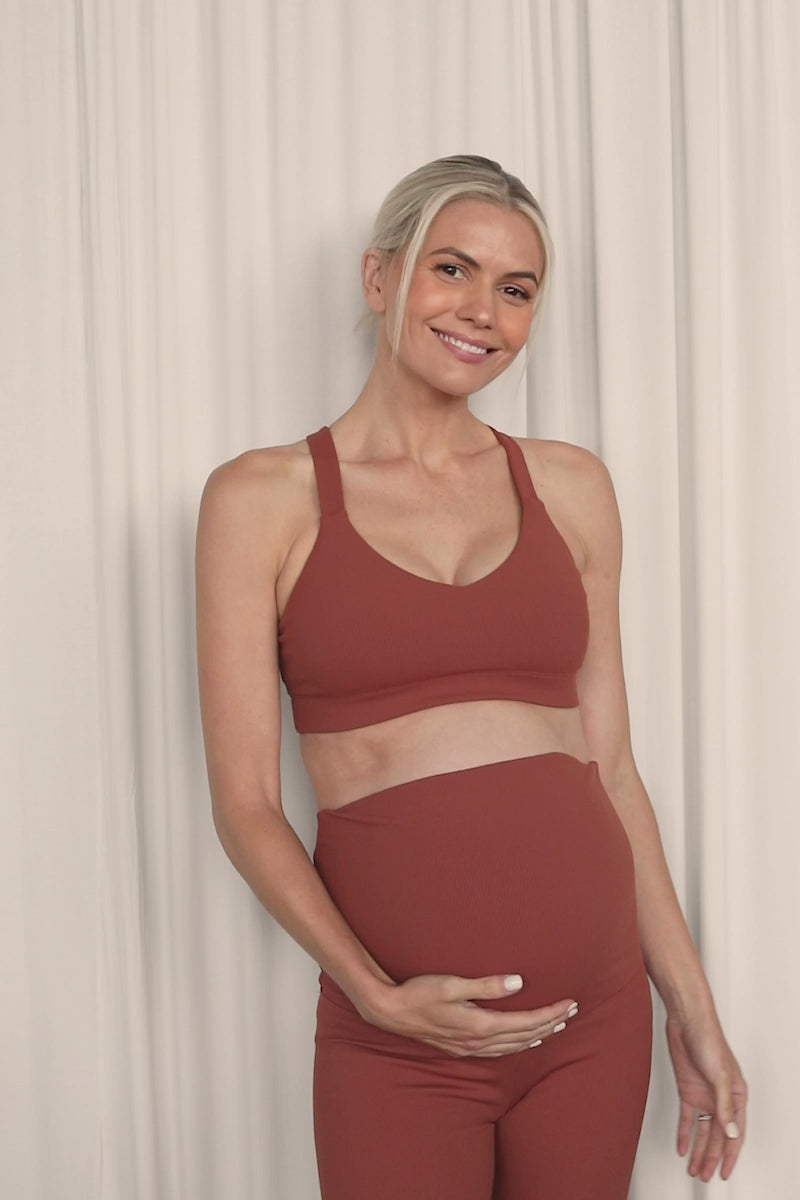 Ribbed ClayFunctional and supportive our Serene Maternity Bike pants have been designed to take you from pre-pregnancy, into the 4th Trimester and beyond. Designed using a soft, cooling lining on the waistband and a slightly lowered back to prevent bunching, these tights are perfect for any activity.