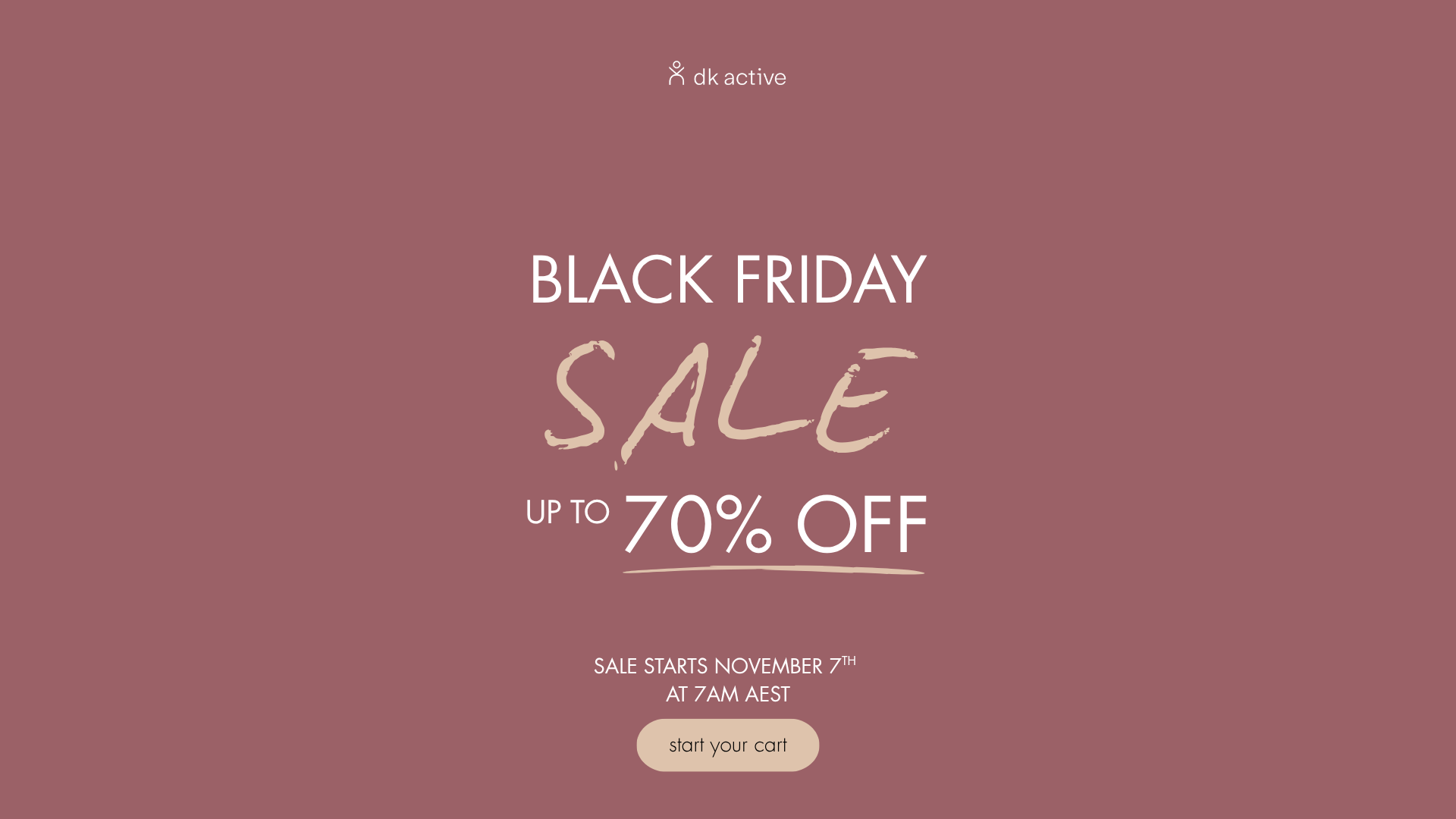 Our up to 70% off site-wide starts on Friday the 7th of November at 7am AEST, please see times for your country or region below: