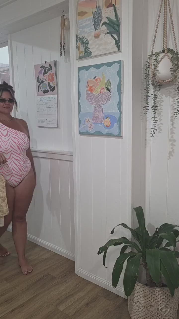 Pink & WhiteGet Ready to Shine in the Levitate One Piece. Featuring a one-shoulder design adding a touch of modern elegance to your beach look. The asymmetrical neckline showcases your shoulder while offering just the right amount of coverage. It's a statement of style and confidence.